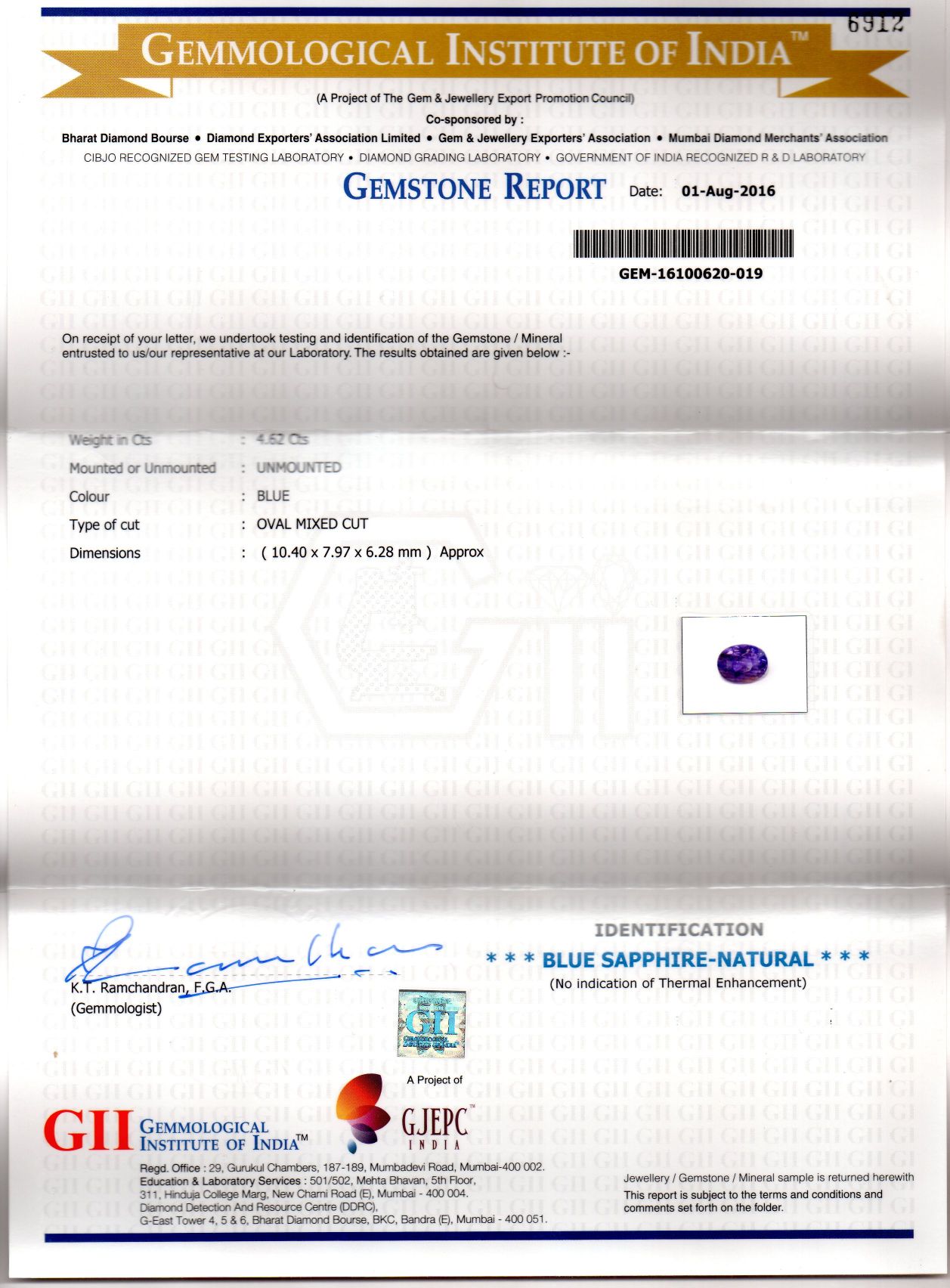 Weight : 4.62 ct.