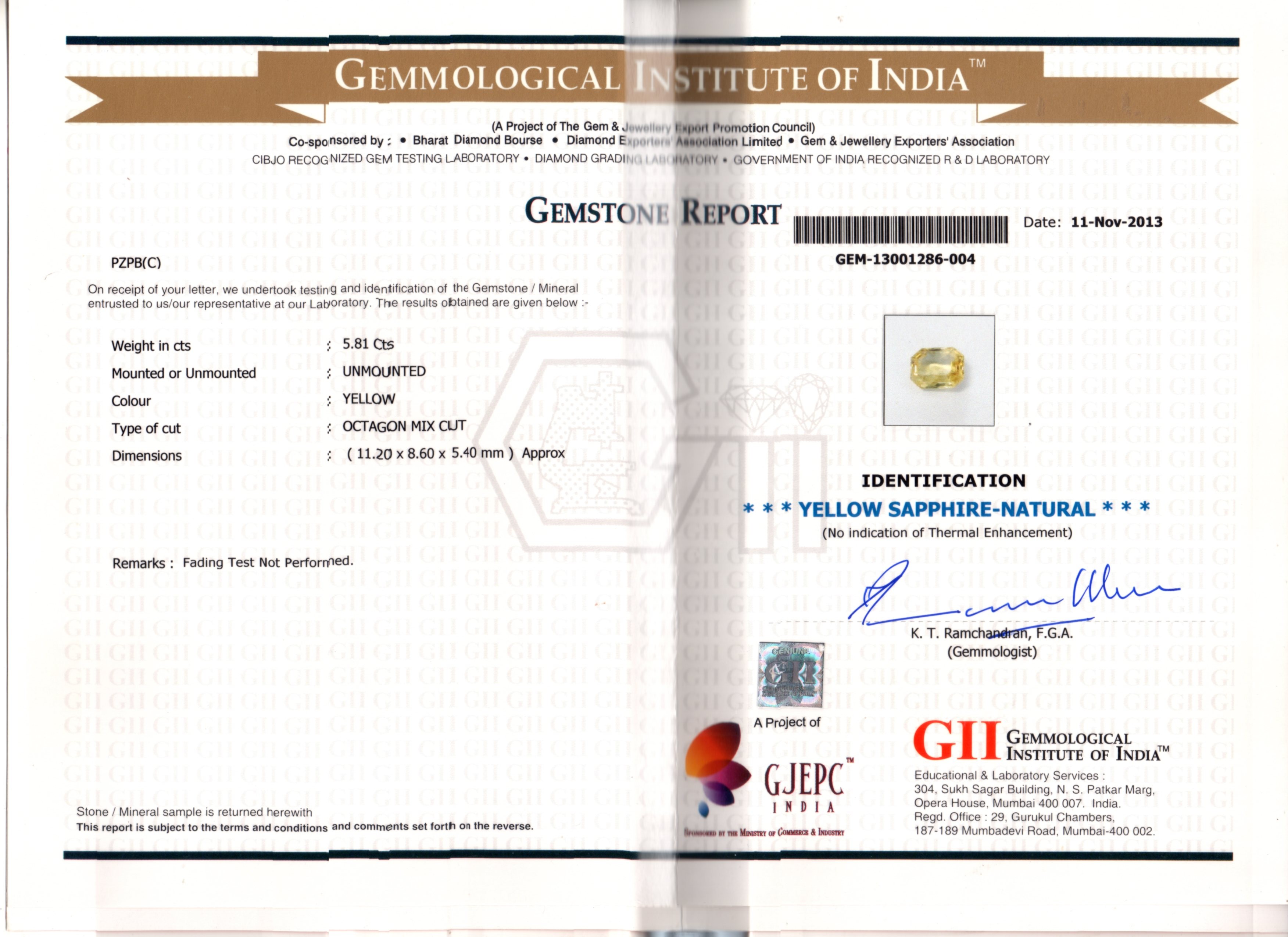 Weight : 5.81 ct.