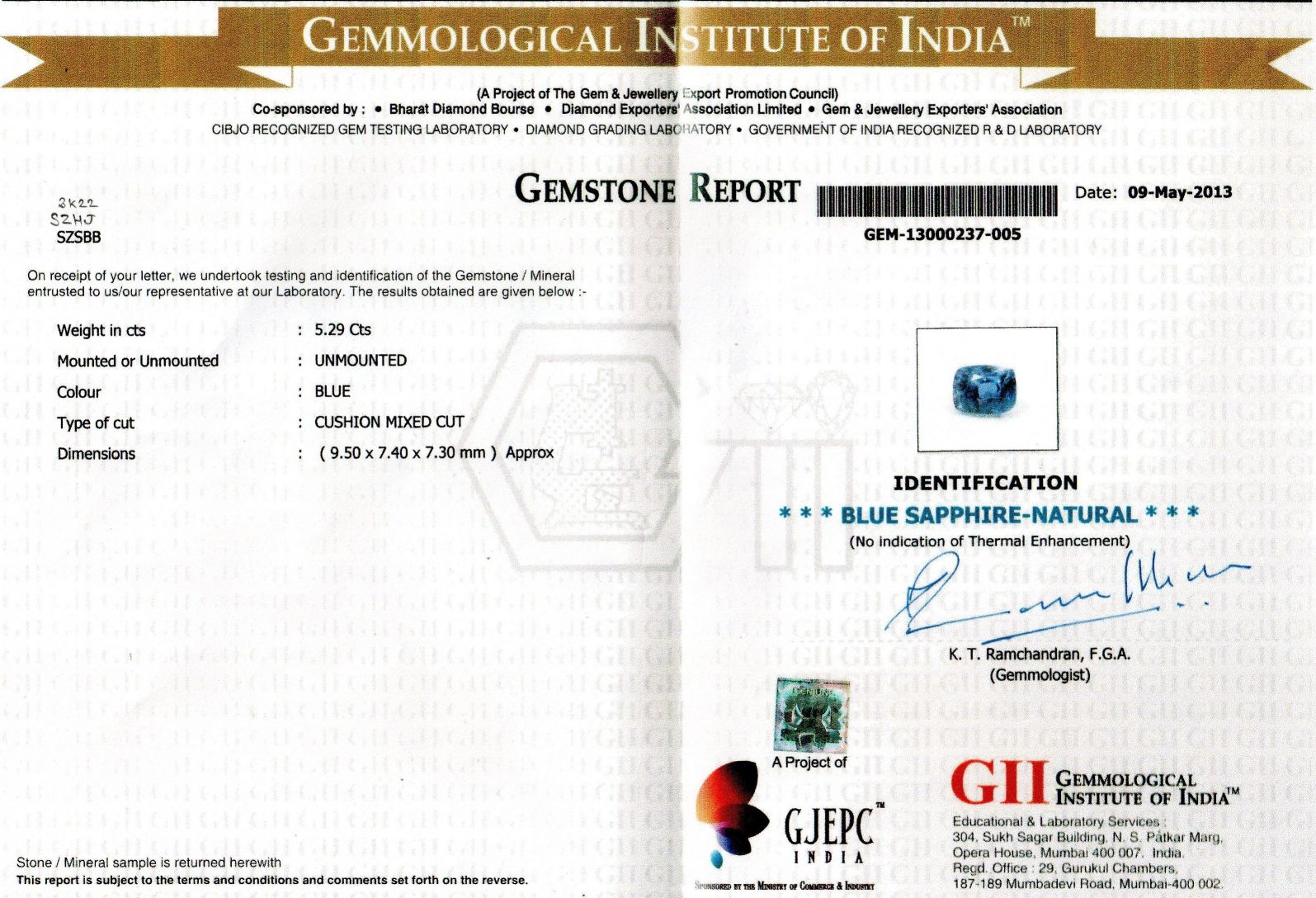 Weight : 5.29 ct.
