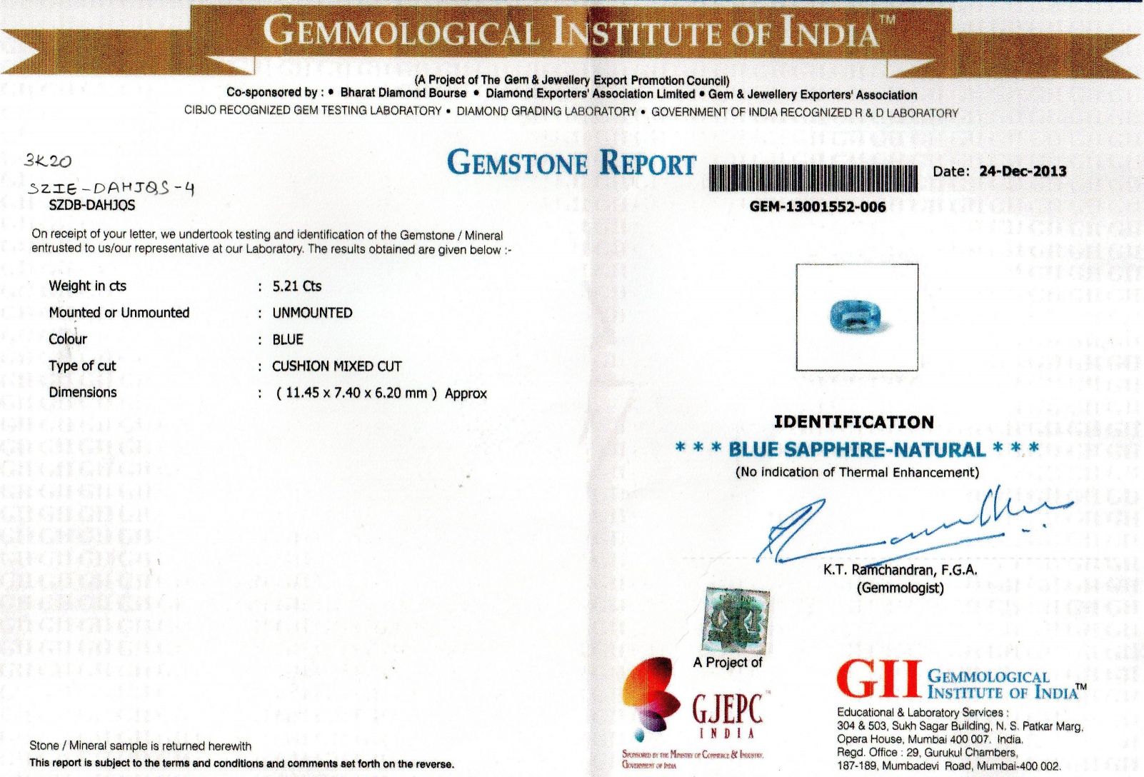 Weight : 5.21 ct.
