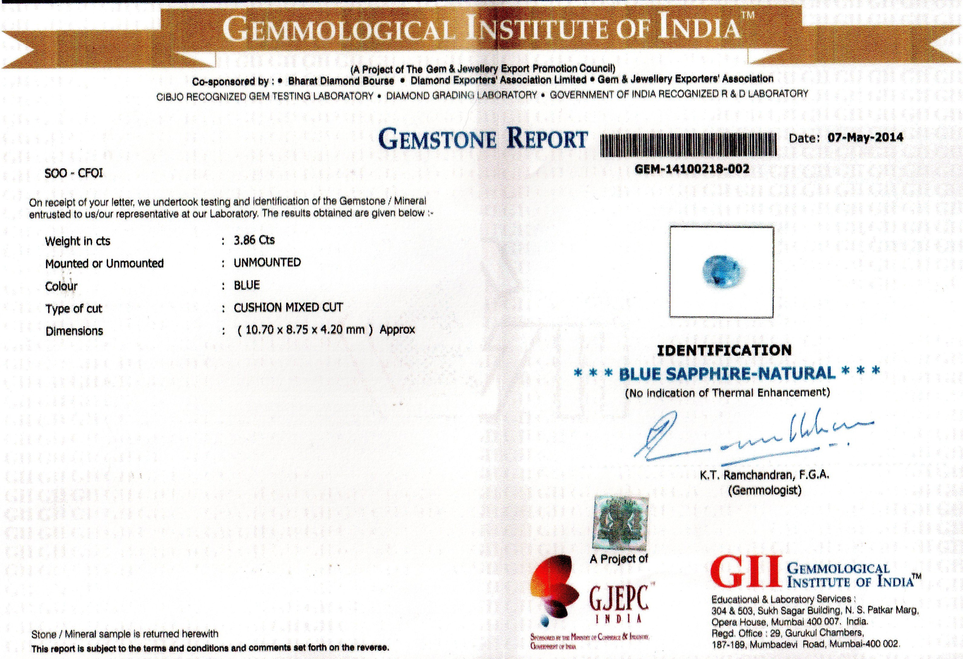 Among all the nine astrological gemstones also referred to as the Jyotish Gemstones the Blue Sapphire is the strongest and the fastest acting gemstones. For many individuals it shows effects instantly by way of gain in wealth, resolution to a problem, windfall gain etc.