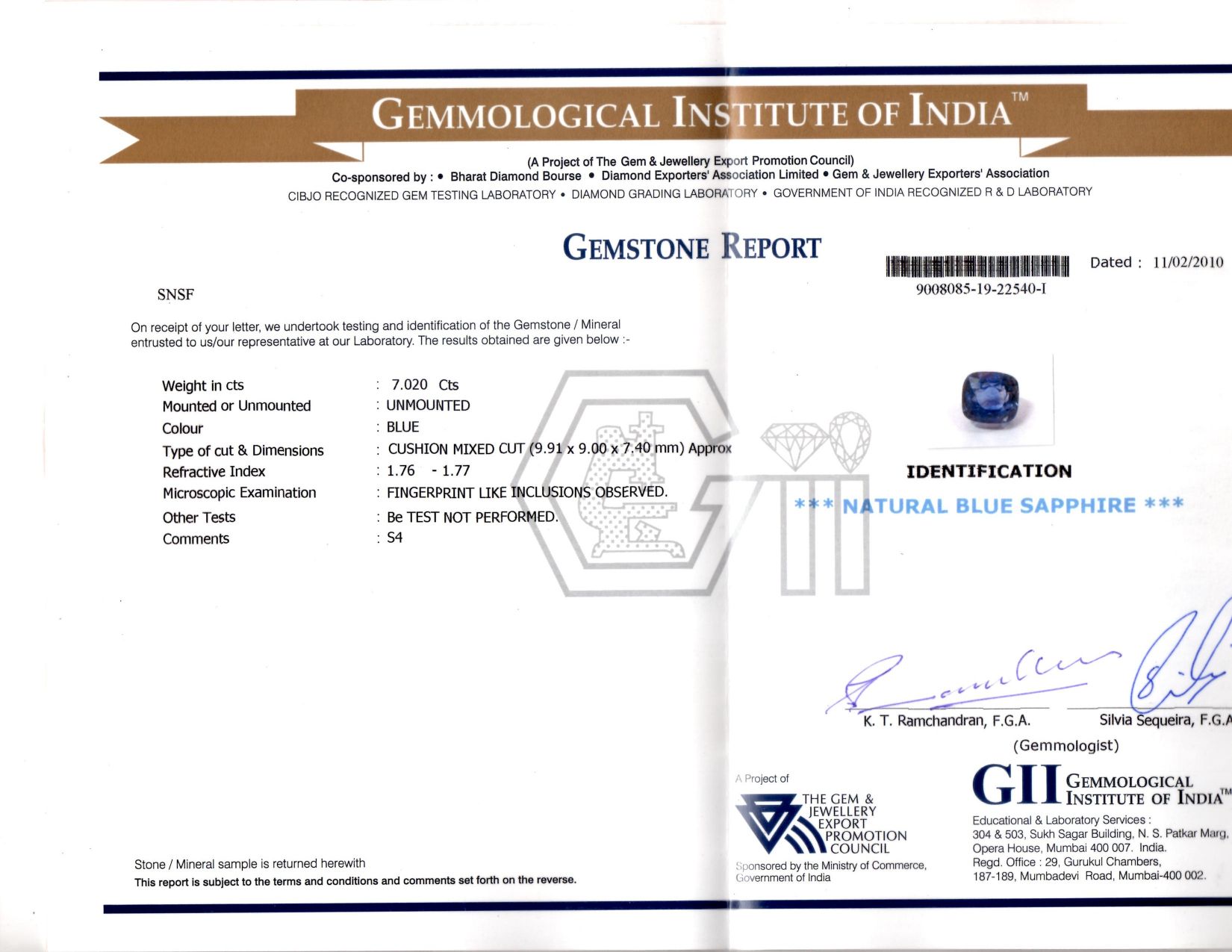 Blue Sapphire is the gemstone of Saturn as per Vedic Astrology. Saturn is a karmic planet and Saturn periods will make or break an individual’s life. The Sade Sathi/ Saturn cycle can be a defining phase in an individual’s life. Blue Sapphire recommendation should be made with caution. Due diligence should be taken to ensure that the Blue Sapphire is absolutely Jyotish Quality and free from any flaws as listed in the sacred texts. Wearing a Blue Sapphire that has flaws can lead to accidents, health problems and fall from grace.