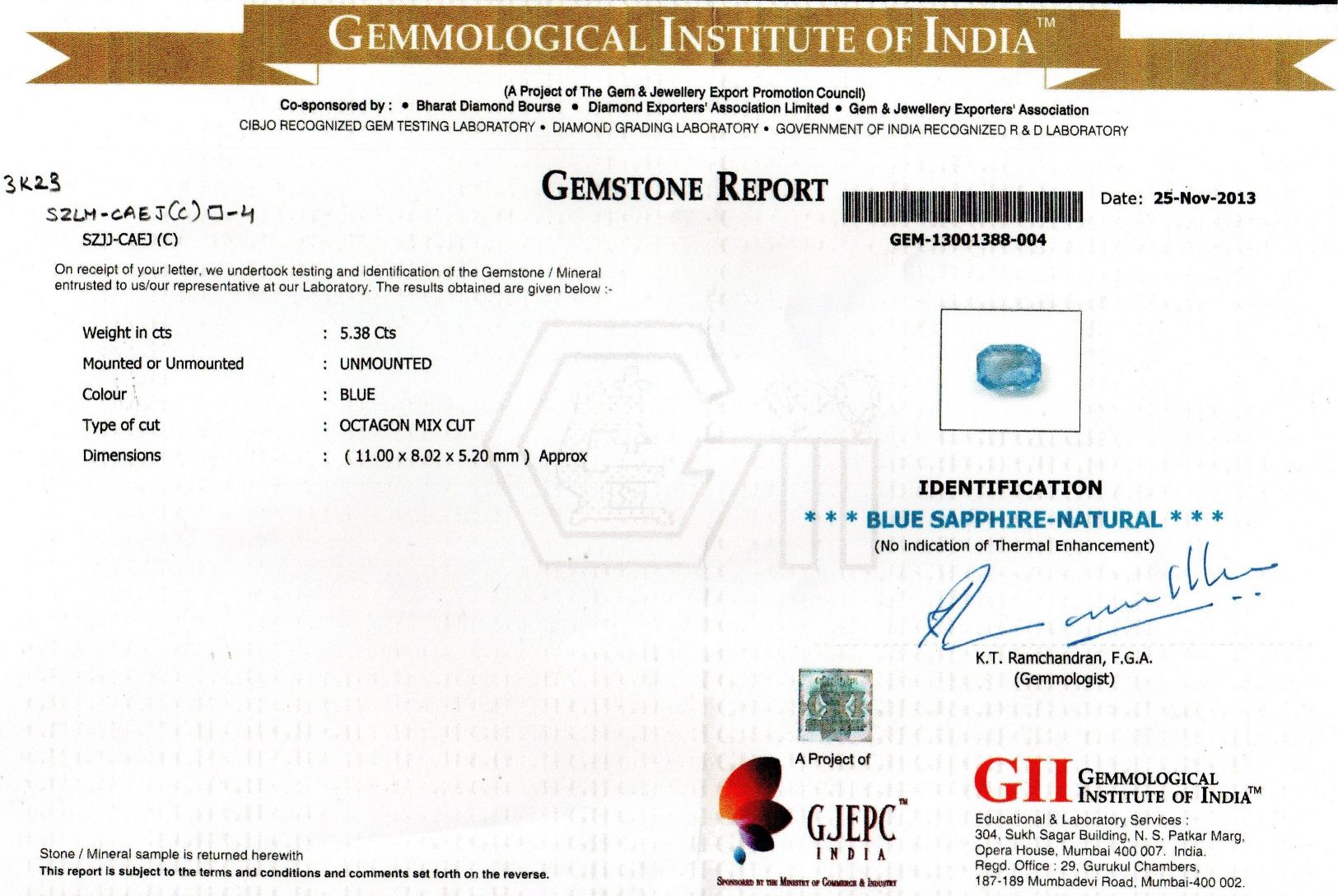Weight : 5.38 ct.