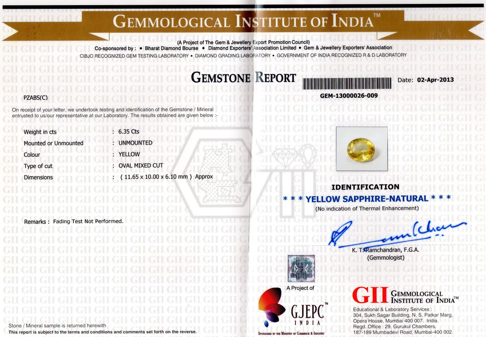Weight : 6.35 ct.